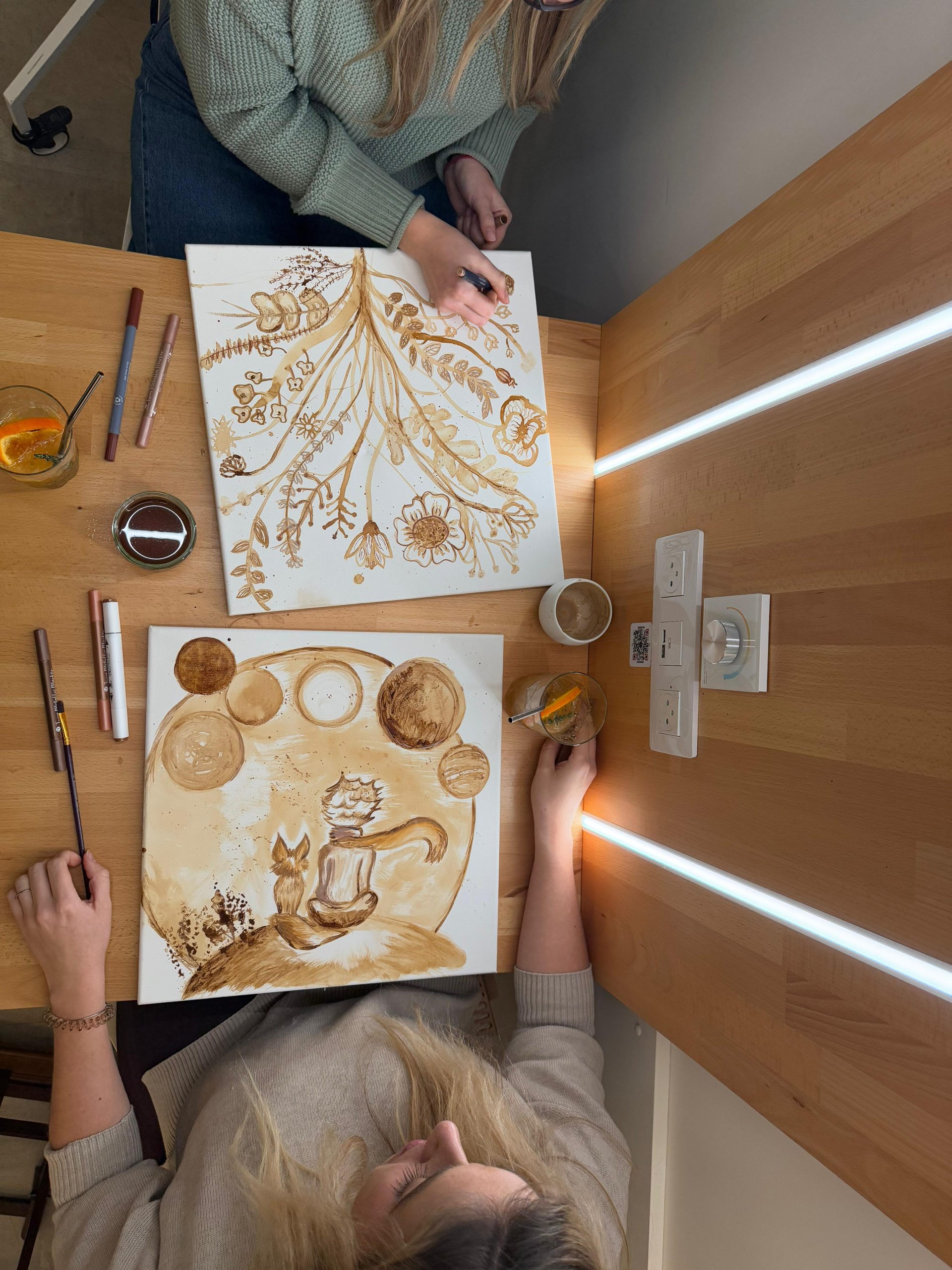 Užijte si netradiční zážitkový kurz, kde se při degustaci kávy, dozvíte od zkušených baristů, něco o kávě a provedeme vás během dvou hodin, díky našim výtvarným lektorům, krásným uměním malování kávou na akvarelový papír.